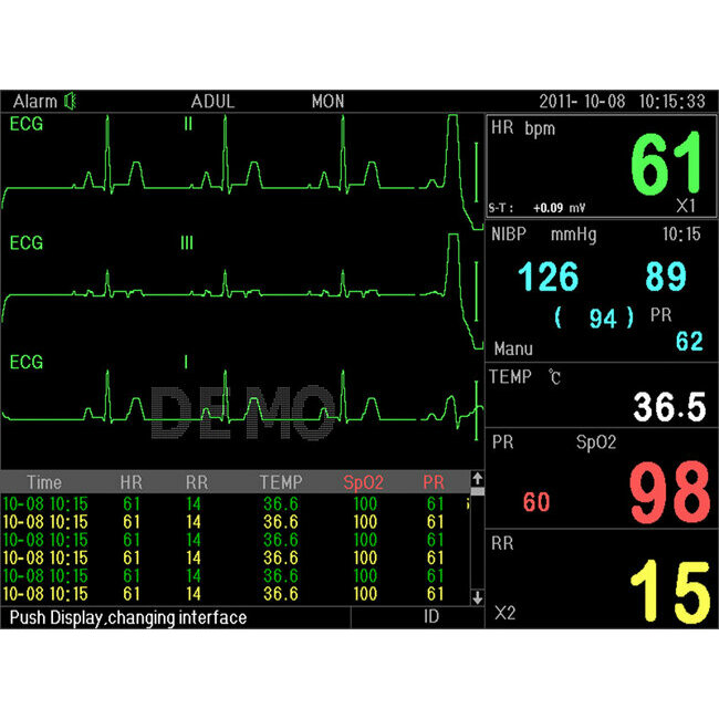 Équipé d’un écran couleur TFT 7’’ haute résolution, il permet un suivi simultané de l’ECG, de la pression artérielle, de la saturation en oxygène, de la respiration et de la température corporelle. Il offre une analyse avancée des arythmies et du segment ST, assurant une surveillance complète et fiable pour les services hospitaliers, cliniques et soins intensifs.
