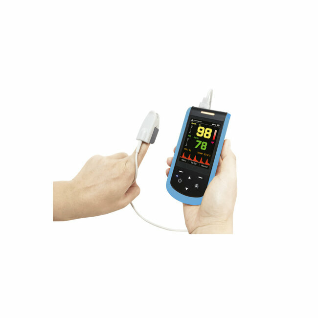 - Livré avec : un capteur SpO2 adulte, socle de recharge, câble USB/micro-USB, adaptateur secteur, housse de protection.